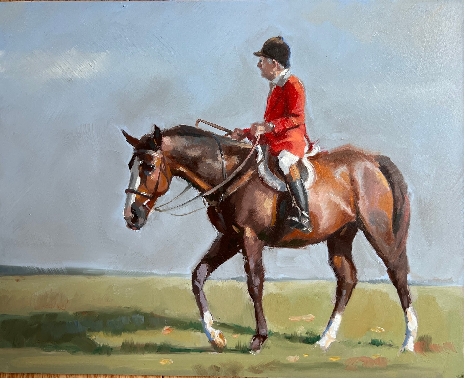 Radnor Hunt Master Mike Tilson on Beach Cay. Framed 14x16 oil on canvas board