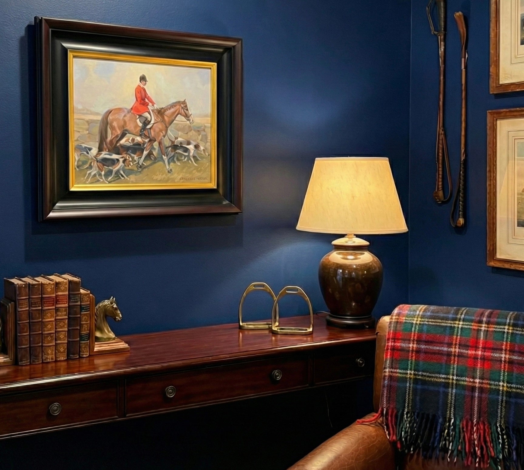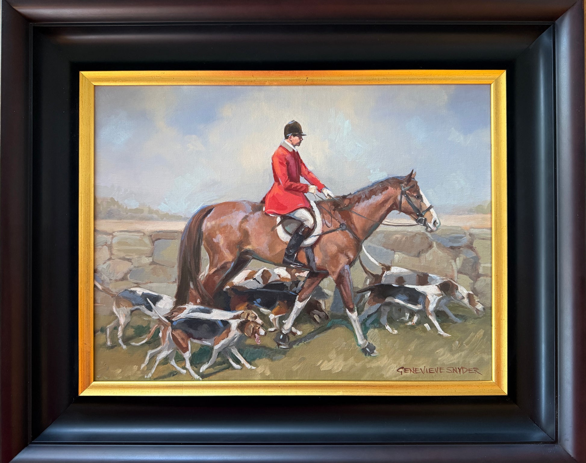 This original 22" x 16" framed oil on linen board depicts Radnor Hunt's Henry on his horse Rocket. Usually I use only my own photos as a painting reference but this piece was inspired by a photo taken by Jana Bannan.