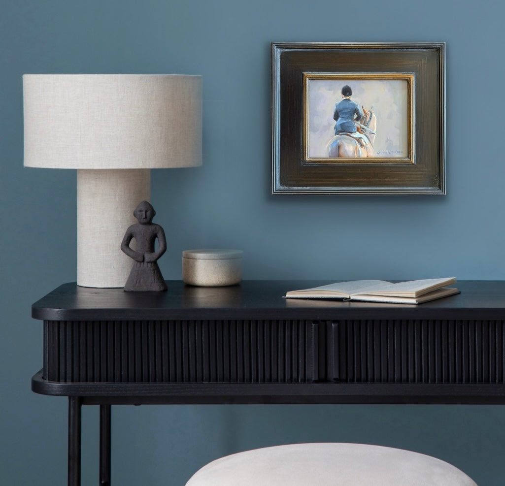 Sidesaddle study is a 16 x 14 framed original Oil on board.